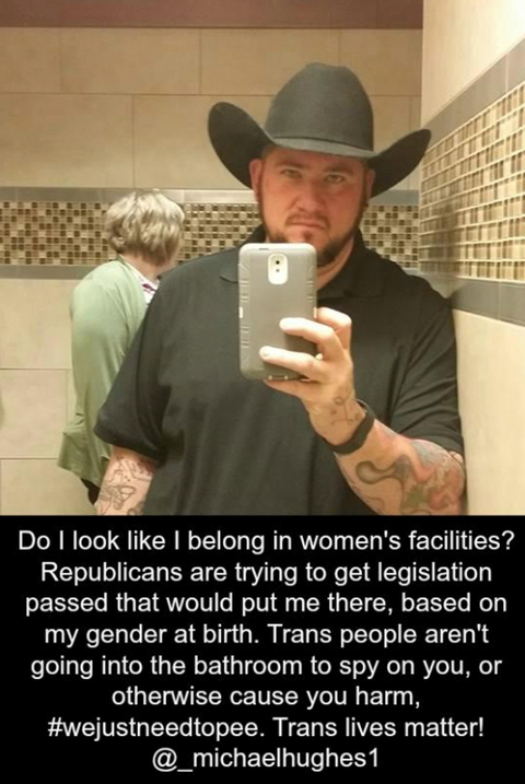 Florida's #hb583 and Minnesota's #sf1543 will make guys like me use women's facilities. This is what that will look like. Trans people aren't trying to access bathrooms to creep on people in there, #wejustneedtopee"
